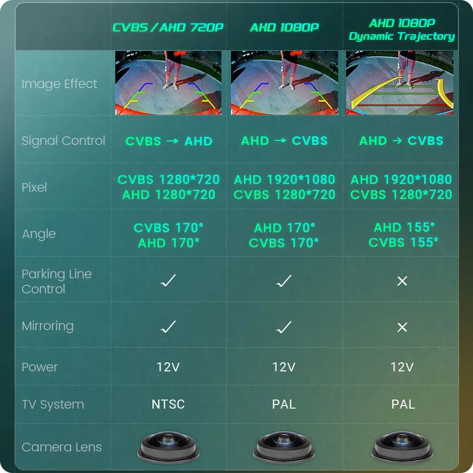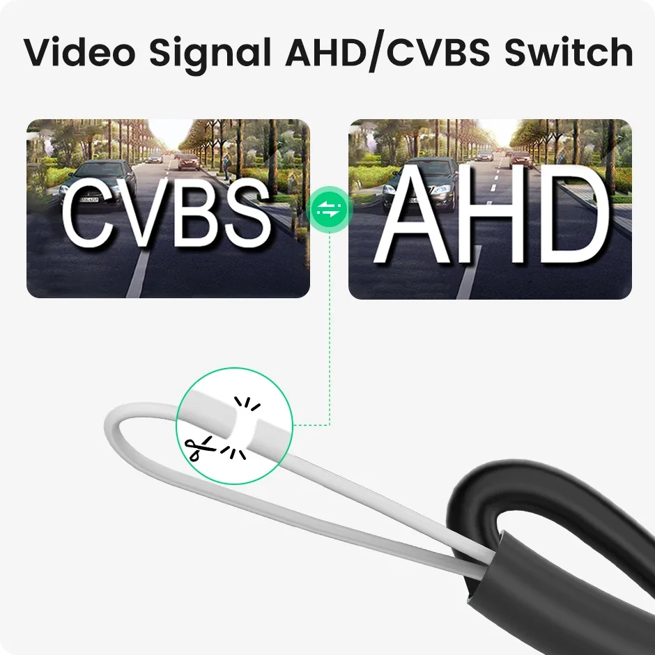 *Підтримує відеосигнали AHD та CVBS --- Цю автомобільну камеру заднього виду можна використовувати з моніторами AHD.